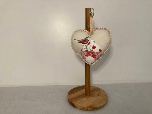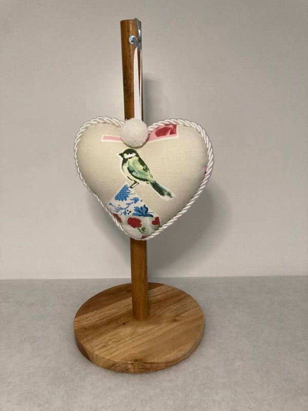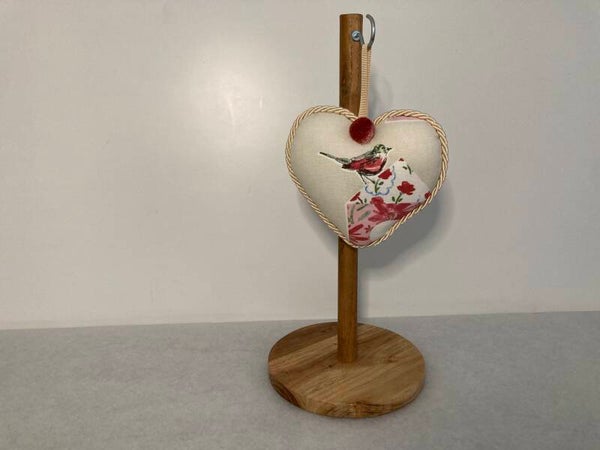 Bird motilf craft Fabric Heart, infused with Lavender, Decorative in designer fabric, with loop for hanging.